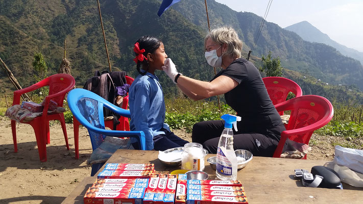 Im Bereich Zahnmedizin organisiert Gerd Korves von Desoca e.V. die Einsätze seiner Kolleginnen und Kollegen für uns. Die Zusammenarbeit klappt super. Die Zahl der Zahnextraktionen geht zurück, was den Statistiken deutlich entnehmen kann. Bei den Schulreihenuntersuchungen nimmt die Zahl der anschließenden zahntechnischen Behandlungen deutlich ab. Es bleibt mehr Zeit für die Prophylaxe. Die Zahnärzte konnten unserer zahntechnischen Assistentin Asmitha sehr viele zusätzliche Kenntnisse in der praktisches Arbeiten vermitteln. In den Zeiten, in denen kein deutscher Zahnarzt zur Verfügung steht, kann sie aus Kathmandu abgerufen werden und selbständig tätig werden. Gerd hat im Frühjahr und Herbst jeweils vier Zahnärzte schicken können.
