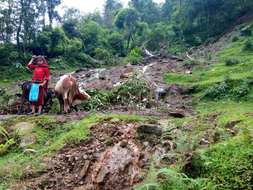 Es hat in Gulmi und anderen Landesteilen Nepals 4 Tage ununterbrochen geregnet, so dass viele Flüsse das Land überschwemmen und Straßen und Wege unpassierbar machen. Vor allem die vom Erdbeben zerstörten Gebiete sind davon betroffen. Es sind leider schon 54 Todesopfer zu beklagen. Die Menschen in Nepal bekommen einfach keine Ruhe, um sich von all den Katastrophen der Vergangenheit zu erholen. Im März und April 2015 ereignete sich das fürchterliche Erdbeben, von September bis Dezember 2015 fand der Streik und Konflikt mit Indien statt, der ebenfalls verheerende Folgen hatte, und nun bedrohen die Auswirkungen des Monsuns die Menschen. Das Erdbeben ist der geographischen Lage Nepals geschuldet, die zwei anderen Katastrophen sind aber von Menschen verursacht: der Streik durch das rücksichtslose Verhalten von Menschen mit ihren Individualinteressen, die Veränderung der allgemeinen Wetterlage durch das Global Warming. Die alten Menschen in Banjhakateri können sich nicht erinnern, jemals solche Niederschläge erlebt zu haben.